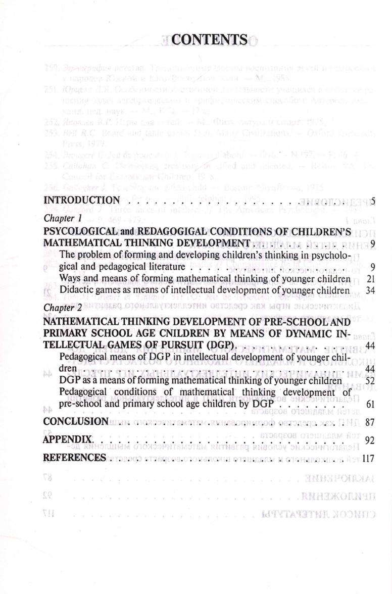 В монографии на основе анализа современных подходов к проблеме формирования и развития мышления на методологическом, теоретическом и методическом уровнях раскрыта сущность динамических игр преследования как педагогического средства формирования и развития интеллектуальных качеств личности. Разработаны и обоснованы рациональные пути и способы их использования для развития мышления детей дошкольного и младшего школьного возраста. Определена методика, позволяющая проводить в детском саду и в начальной школе целенаправленную работу по развитию мышления в процессе использования динамической игры преследования и решения системы ее задач