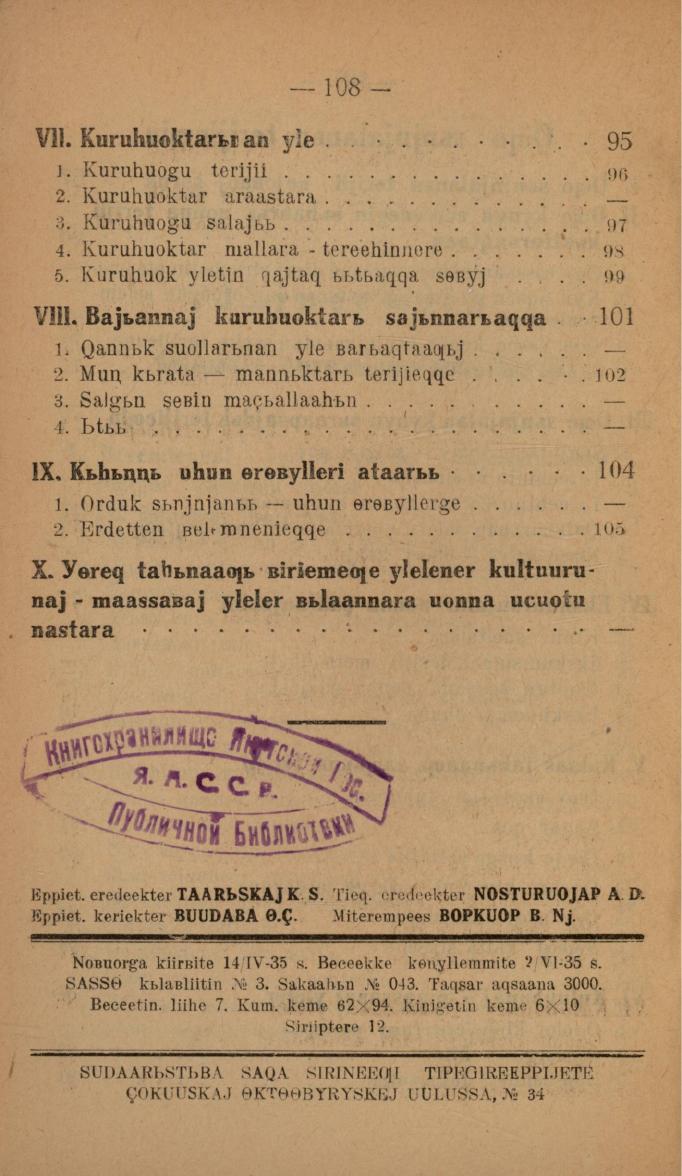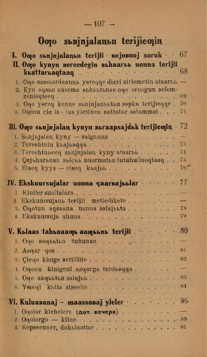Оскуола бэрэмиэнэлэрин уонна оҕо сыньньалаҥын тэрийии / Нь. Дьөгүөрэп. - Дьокуускай : Судаарыстыба Саха сиринээҕи бэчээттиир суута, 1935. - 108 с., [1] л. табл.
