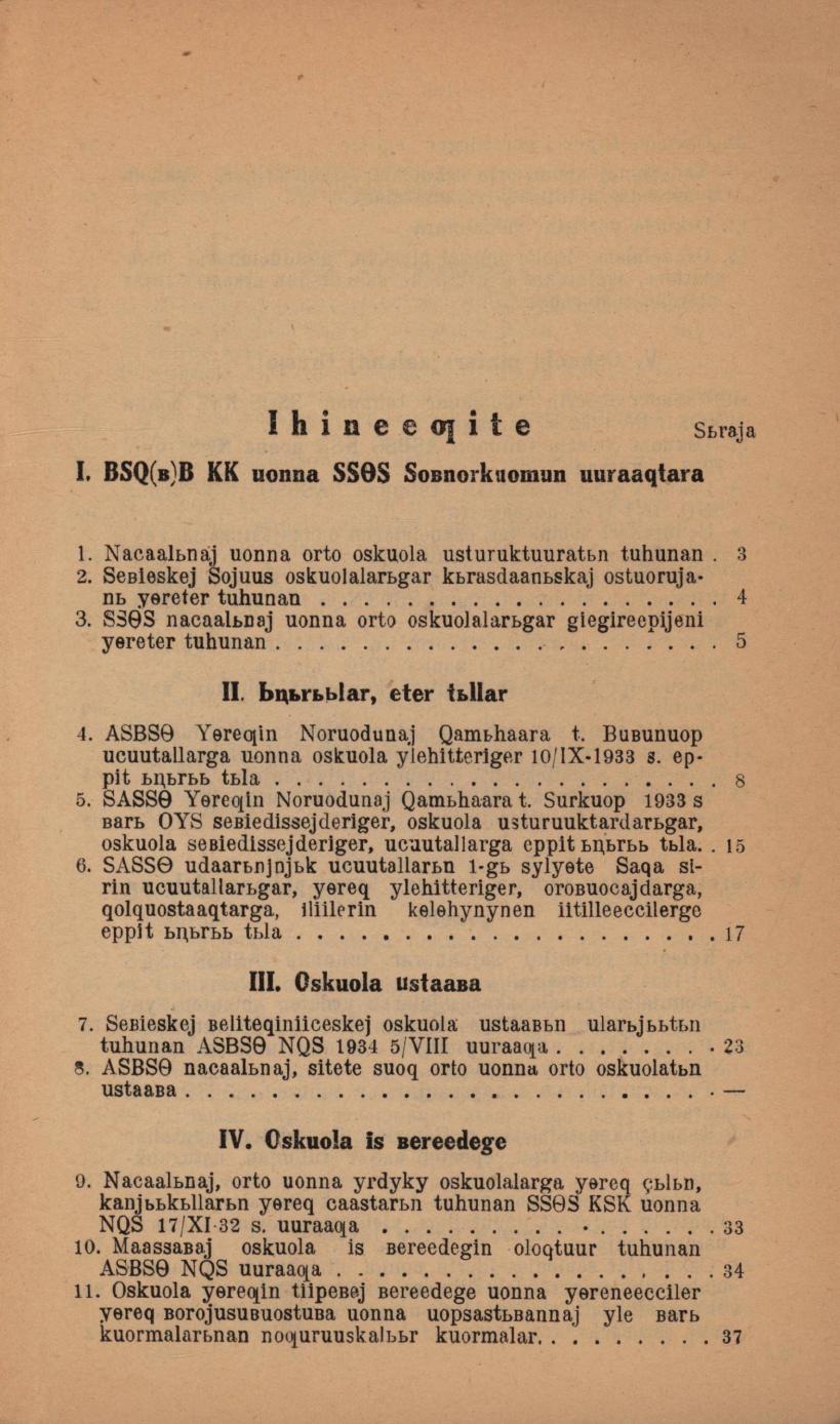 Оскуола үлэһитин сирдьитэ : эписсийээлинэй матырыйааллар / САССӨ Үөрэх Норуодунай Хамыссарыйаата ; С. И. Ондуруоһап хомуйан тылб. оҥорбута. - Дьокуускай : Судаарыстыба Саха сиринээҕи бэчээттиир суута, 1935. - 138 с.