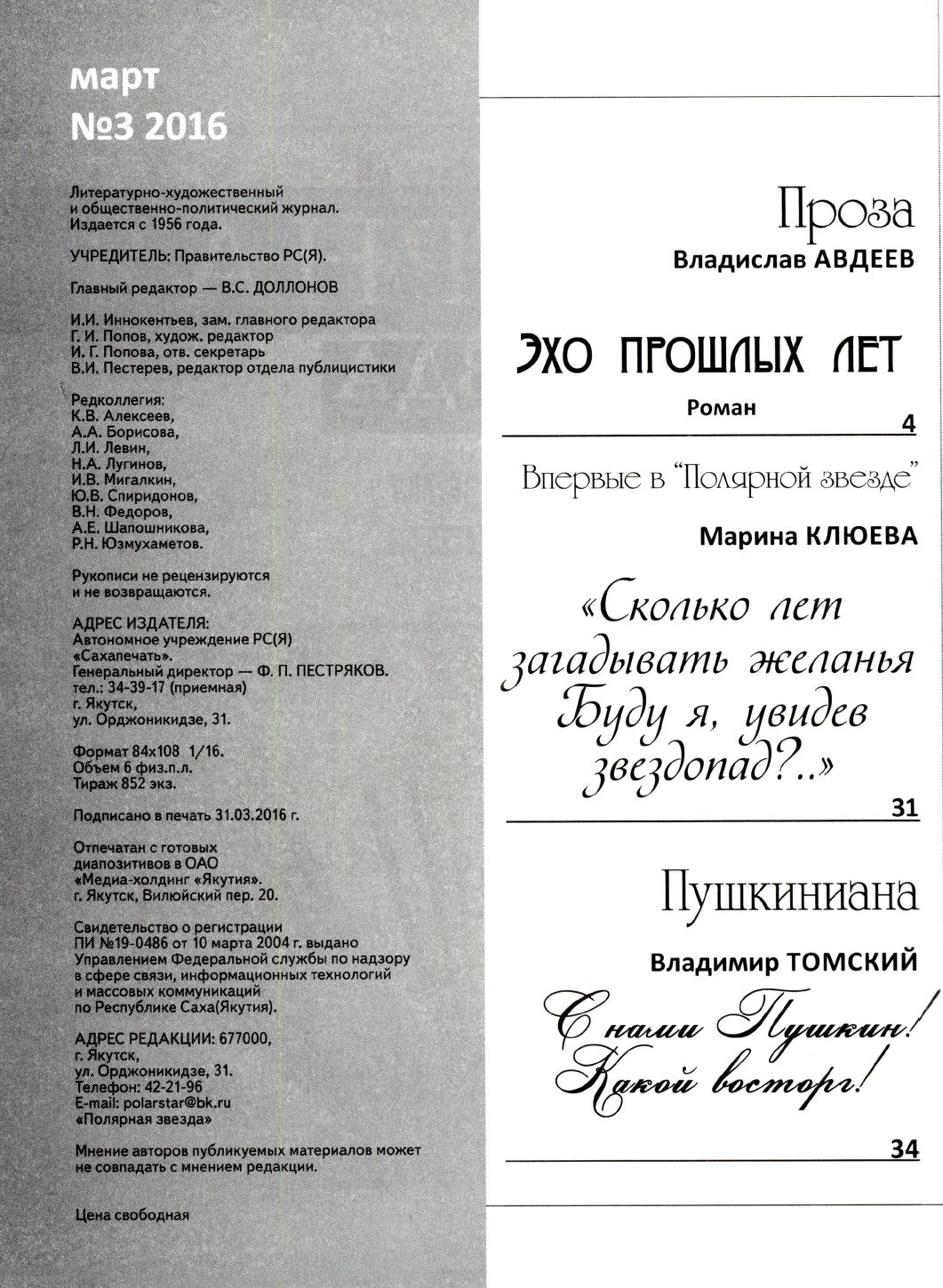 - 3. Полярная звезда: литературно-художественный и общественно-политический журнал, 2016, №4 (апрель)